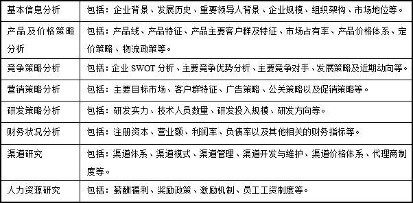 · 各競爭對手在戰略布局、營銷管理、渠道架構等方面各自手段及優劣勢